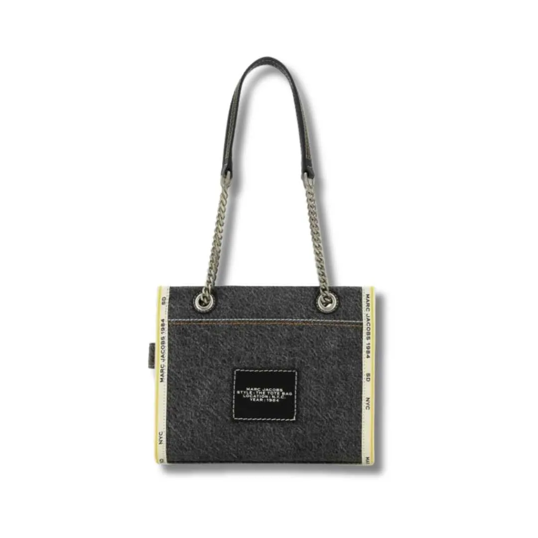 The Denim Chain Small tote bag from Marc Jacobs exudes sophistication with leather and chain-link top handles and an elegant silhouette. This cotton design offers a top zip closure for secure storage and an internal zip pocket and card slot for organized convenience.