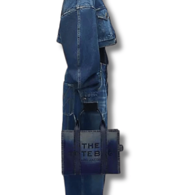 Crafted of photo-printed denim on leather, this medium tote bag from Marc Jacobs is finished with contrast stitching.