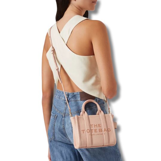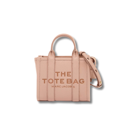 The Leather Mini Tote Bag by Marc Jacobs crafted in grained leather with contrasting lettering logo printed on the front.