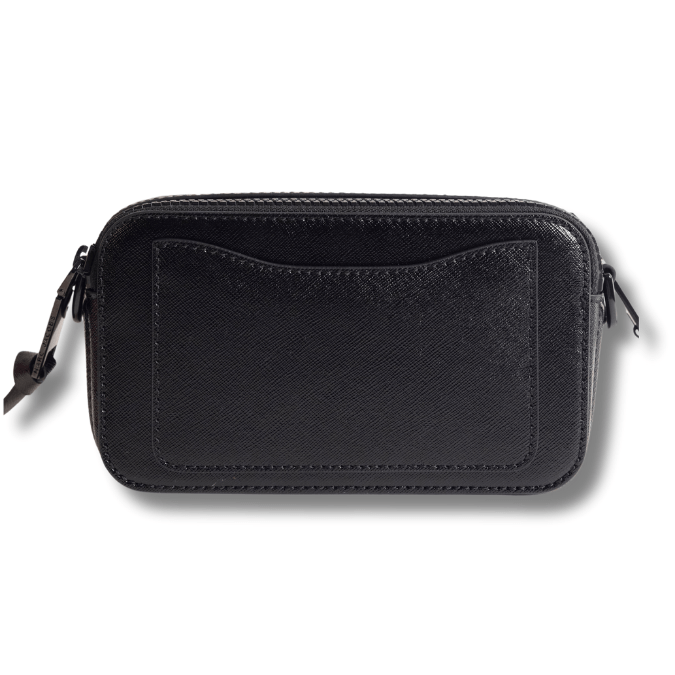 Marc Jacobs brings a classic touch to the brand’s signature The Snapshot bag, rendered in refined saffiano textured leather. This compact camera cut features a rectangular body with gently rounded corners, two all around zip fastenings, metal hardware and a central logo plaque, signed off with an embossed logo to the top. The spacious fully-lined interior features an internal slip pocket and an internal logo stamp, which relays the name of the bag, plus a a detachable and adjustable guitar style shoulder strap.