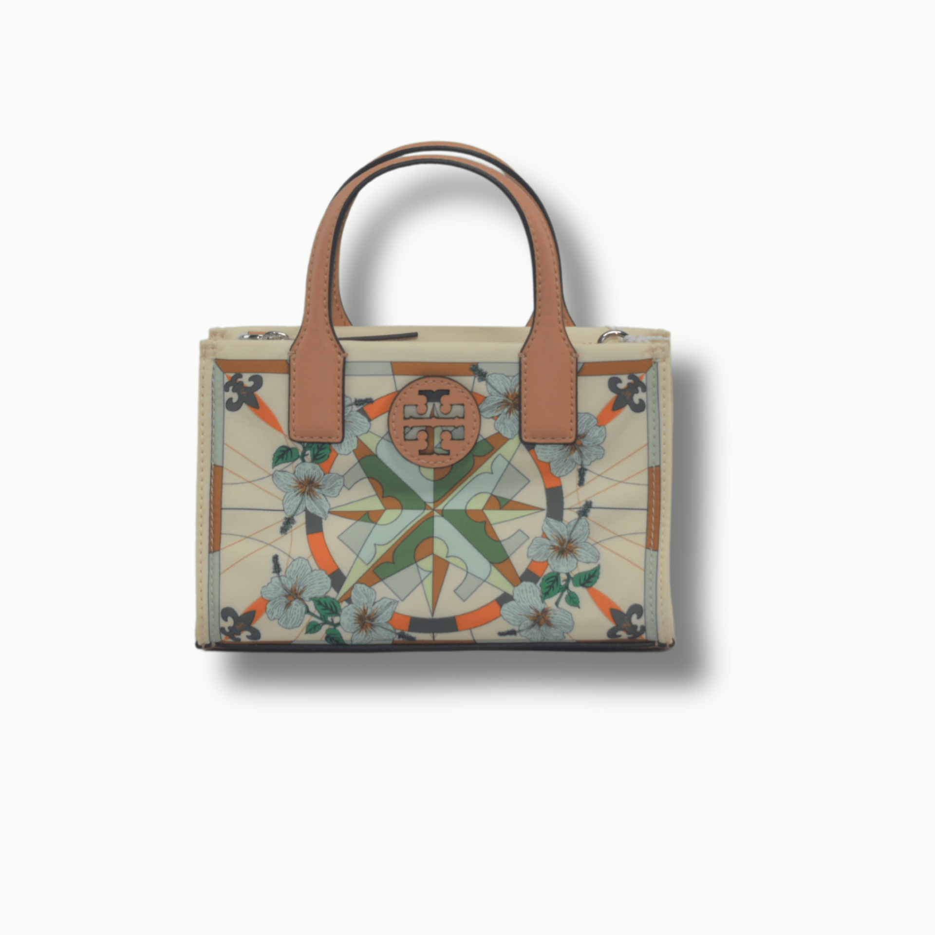 Nylon, leather trim Zip closure Top handles with 2.5″ drop Adjustable and removable crossbody strap with 23″ drop One interior slit pocket 7″W x 4.5″H x 2.5″D