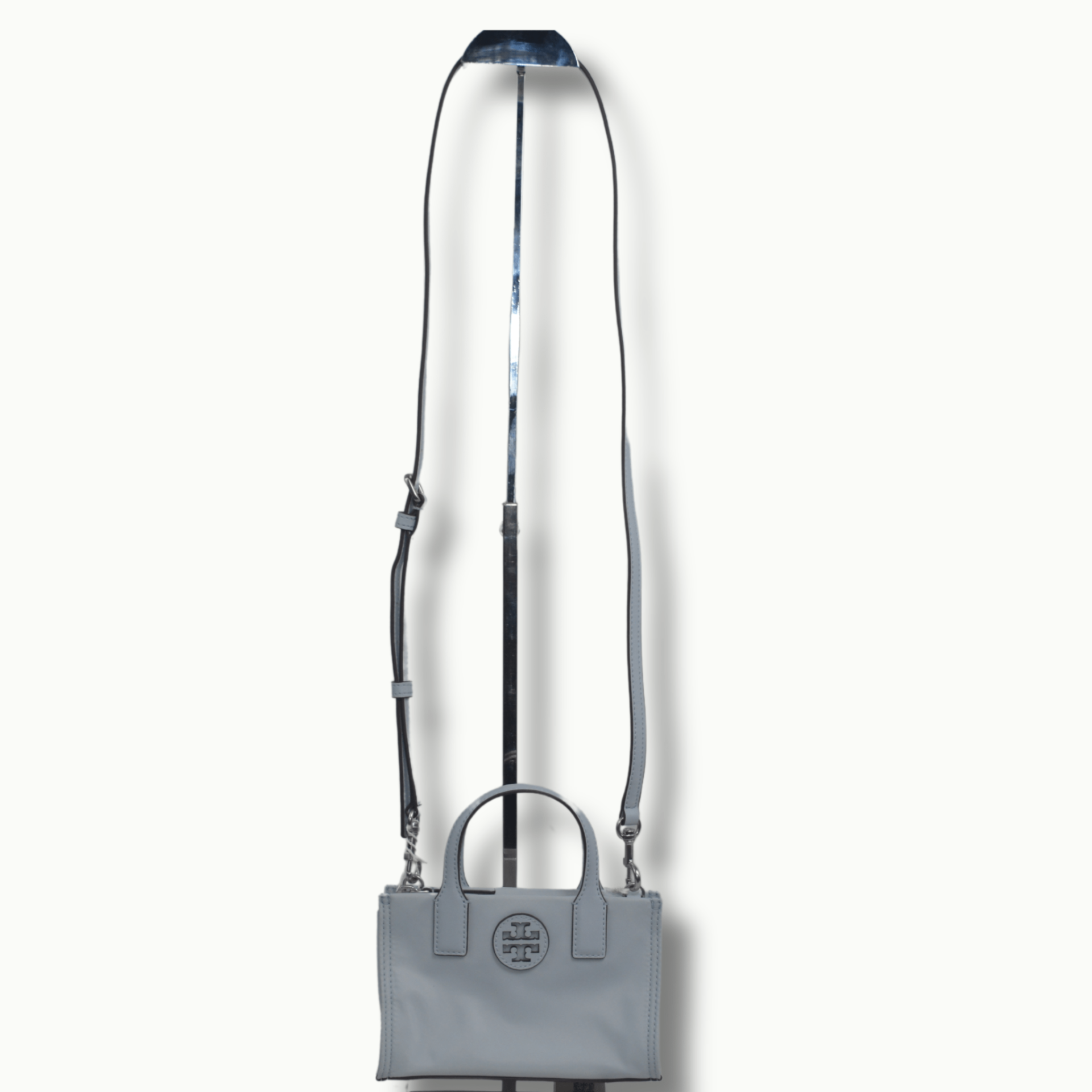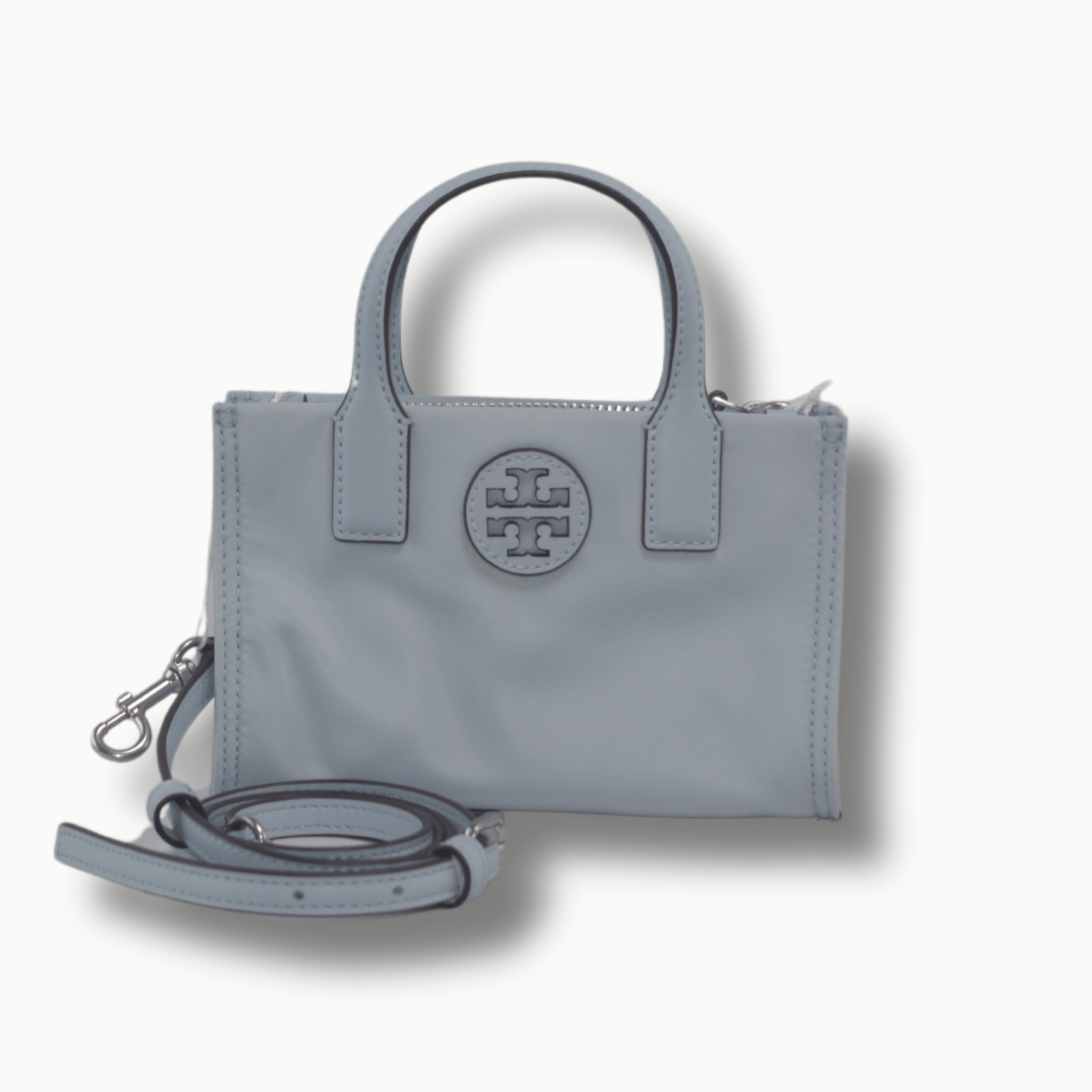 Nylon, leather trim Zip closure Top handles with 2.5″ drop Adjustable and removable crossbody strap with 23″ drop One interior slit pocket 7″W x 4.5″H x 2.5″D