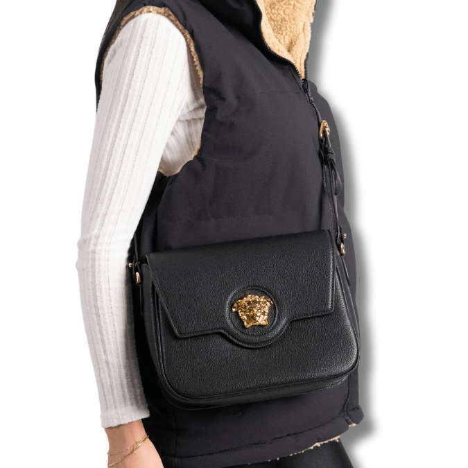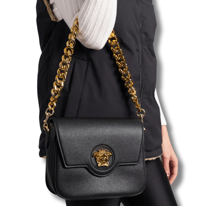 La Medusa Leather Shoulder Bag – Black